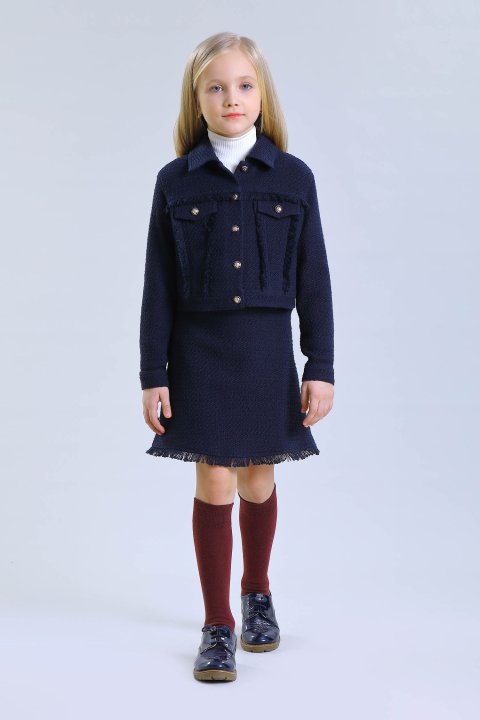 Классический школьный жакет. Прямой силуэт, модель оверсайз, застежка на единственную пуговицу. Спереди два прорезных кармана.
