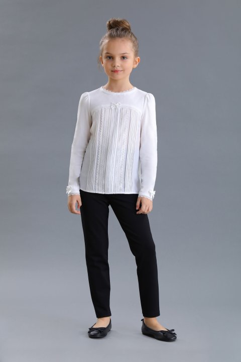 Классическая школьная юбка. Модель с односторонними складками. Изделие из костюмной вискозы, застегивается сбоку на молнию и пуговицу. Пояс украшен бантом с подвеской F. Юбка без подкладки.