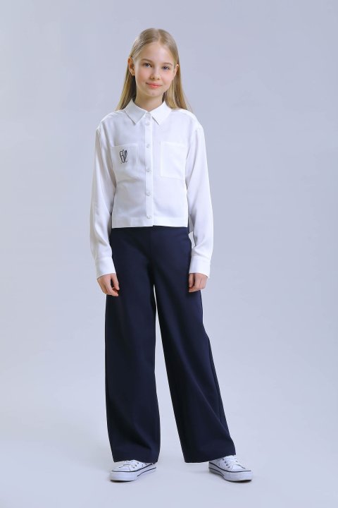 Жилет из костюмного трикотажа с V-образным вырезом. На полочках декоративные карманы с пуговицами. Спинка изделия оформлена хлястиком. Застежка на фирменные пуговицы.