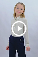 Блузка из трикотажа с люрексом. Классический отложной воротник. Застежка на пуговицы со стразами.