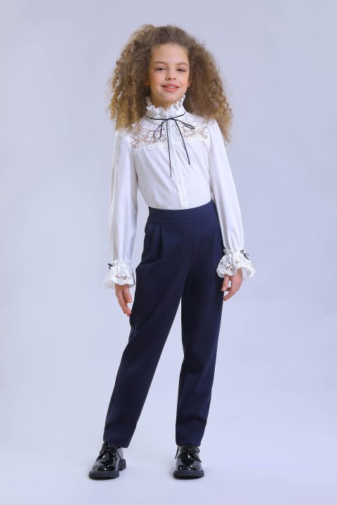 Школьные брюки-палаццо из костюмной вискозы. Модель со стрелками. Боковые карманы. На поясе шлевки для ремня. Застежка на молнию.
