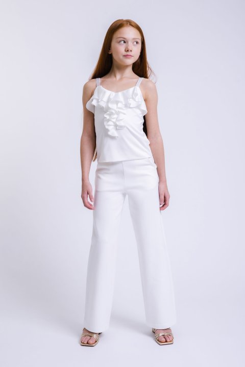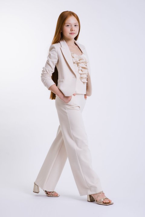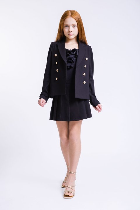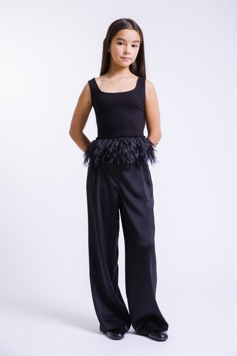 Юбка-шорты из костюмного трикотажа. Широкие полы создают эффект юбки с объемными фалдами. Модель украшена шильдом 'туфелька'. По бокам прорезные карманы. Изделие без подкладки.