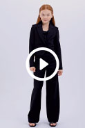 Нарядные брюки-палаццо из костюмного трикотажа. Модель с прорезными карманами по бокам. Пояс на резинке. Модель без декора и застежек.