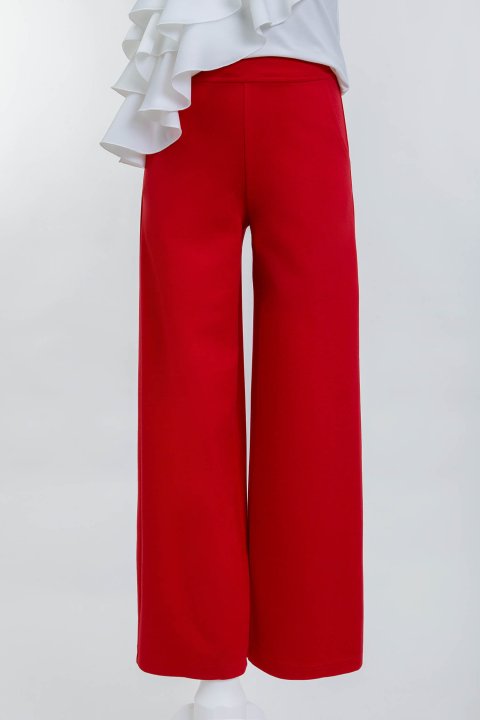 Нарядные брюки-палаццо из костюмной вискозы. Модель с прорезными карманами по бокам. Брюки застегиваются спереди на молнию и пуговицу.