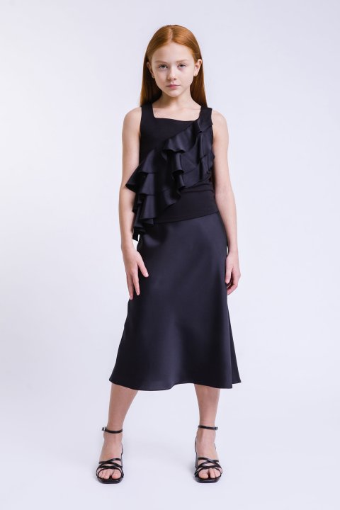 Юбка-шорты из костюмного трикотажа. Юбка со складками. В боковых швах карманы. Спинка с резинкой в поясе, без застежки. Изделие без подкладки.
