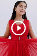 Нарядное платье для девочки. Модель выполнена из мягкой сетки. V-образный вырез украшен вставкой из сетки со стразами. Линия талии украшена поясом, по центру шлевка декорирована стразами. Юбка длинная из нескольких слоев мягкой сетки. Изделие на трикотажной вискозной (бамбук) подкладке. Платье застегивается на молнию на спинке.