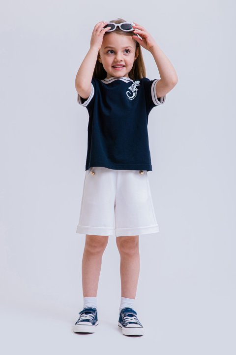 Элегантный жакет для девочки выполнен в классическом стиле с аккуратными контрастными деталями. Модель в молочном цвете дополнена тёмной отделкой по вороту, манжетам и карманам, а также декоративными пуговицами с золотистым акцентом. Жакет хорошо держит форму, комфортно сидит по фигуре и не сковывает движений. Идеально подойдёт для школы, торжественных мероприятий, семейных праздников и официальных выходов. Легко сочетается с юбками, брюками и шортами, создавая стильные и завершённые образы.