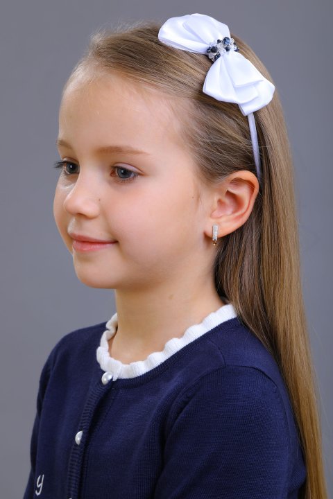 Джемпер из вязаного трикотажа для девочки. Модель выполнена из хлопчатобумажной пряжи. Верхняя часть с узором, ромбы расшиты бусинами. Круглый вырез с оборками и атласным бантом. Модель с длинными рукавами. Джемпер без застежек, легко снимается и надевается через голову.