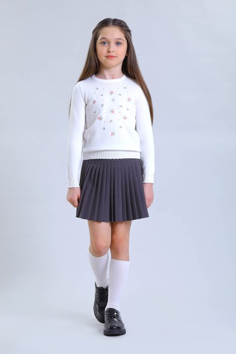 Вязаный топ для девочки. Модель с фирменным шевроном. Модель с изящным узором. Подходит в качестве жилета.