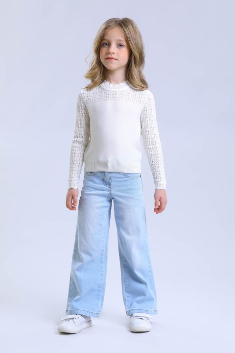 Ажурный вязаный топ из 100% хлопка. Модель на тонких бретелях. Декоративная планка с пуговицами из натурального перламутра. Изделие без застежек.