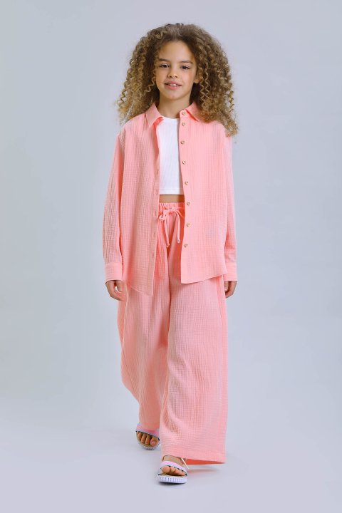 Вязаный кардиган для девочки. Модель выполнена из пряжи с содержанием шерсти и мохера. Полочки и спинка из ажурного полотна. Застежка на пуговицы с жемчужным блеском. Горловина, планка, манжеты и низ изделия отделаны резинкой. Манжеты и низ изделия с фестонным краем украшены стразами-полусферами.