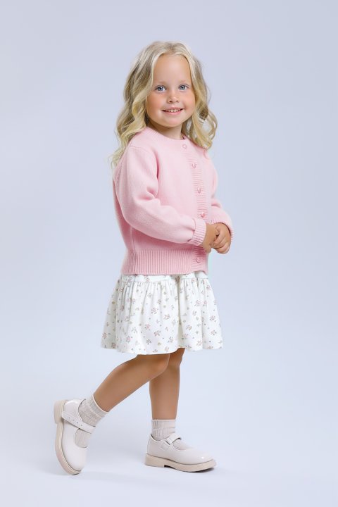 Жилет из вязаного трикотажа. Изделие выполнено из хлопчатобумажной пряжи. Модель украшена фирменным шевроном 'F school'. Застежка на фирменные гербовые пуговицы с эмалью и стразами.