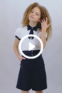 Школьные шорты из костюмной вискозы. Модель с высокой посадкой, длина выше колен. Шорты с заутюженными стрелками, по бокам расположены карманы. Широкий пояс выполнен из эластичного трикотажа. Застежка на молнию и гербовые пуговицы.