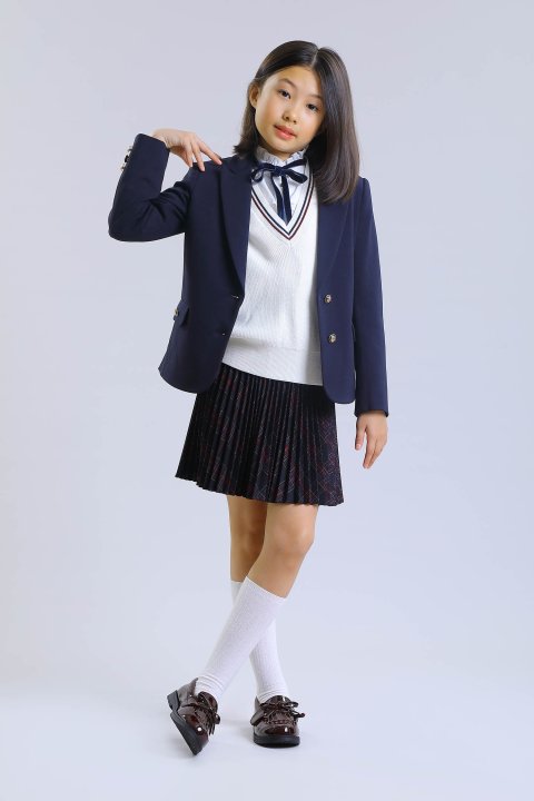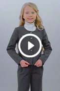 Школьный жакет с круглой горловиной, без воротника. Укороченная модель прямого силуэта. На полочке шеврон с буквой 'М' со стразами. Застегивается на фирменные пуговицы с эмалью. Модель на поливискозной подкладке.