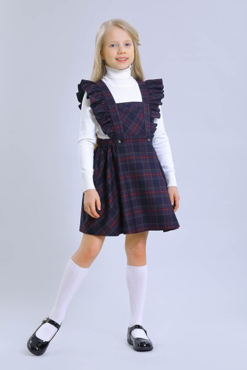 Школьный жилет с V-образным вырезом из бархата. Застегивается на фирменные пуговицы с эмалью. На спине хлястик с пуговицами. Изделие на поливискозной подкладке.