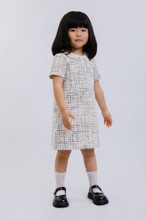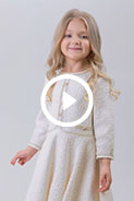 Нарядное платье для девочки. Модель выполнена из букле с люрексом. Декоративная планка с фирменными пуговицами с буквой 'М' отделана тесьмой из люрекса. Манжеты украшены тесьмой из люрекса. Изделие на поливискозной подкладке. Роскошный объем достигается за счет волана из жесткой сетки, настроченного на поливискозную подкладку юбки. Изделие застегивается на спинке на молнию с пуллером 'бантик'.