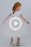 Нарядное платье из сетки с вышивкой. Горловина украшена кружевом. Лиф украшен бусинами с жемчужным блеском, линия талии отделана тесьмой из бусин и бисера. Рукава фонарики из сетки с вышитыми цветочками. Юбка из нескольких слоев сетки, верхний слой сетки с вышивкой по нижнему краю с фестонами. Лиф на трикотажной хлопчатобумажной подкладке. Роскошный объем достигается за счет волана из жесткой сетки, настроченного на поливискозную подкладку. Платье застегивается на молнию на спинке, подобранную в тон изделия.