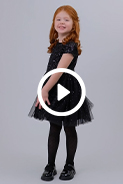 Нарядное платье для девочки. Модель выполнена из сетки с пайетками. Лиф на трикотажной вискозной (бамбук) подкладке. Платье с короткими рукавами. Роскошный объем достигается за счет волана из жесткой сетки, настроченного на поливискозную подкладку юбки. Линия талии на чёрном платье украшена металлическим шильдом 'Love' со стразами. Изделие застегивается на пуговицу на спинке.